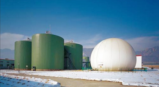 雙膜柔性儲氣罐是近幾年國內引用比較多的一種儲氣裝置,其結構顧名思義是利用裝用膜材加工而成共分為內、外兩層以及附加底膜組成。其中內膜與底膜之間形成一個密閉容量可變的氣密空間主要用來儲存沼氣,外膜與內膜之間依靠外部的增壓控制系統進行充氣從而形成一定的壓力比將內氣囊中的沼氣輸送出去。